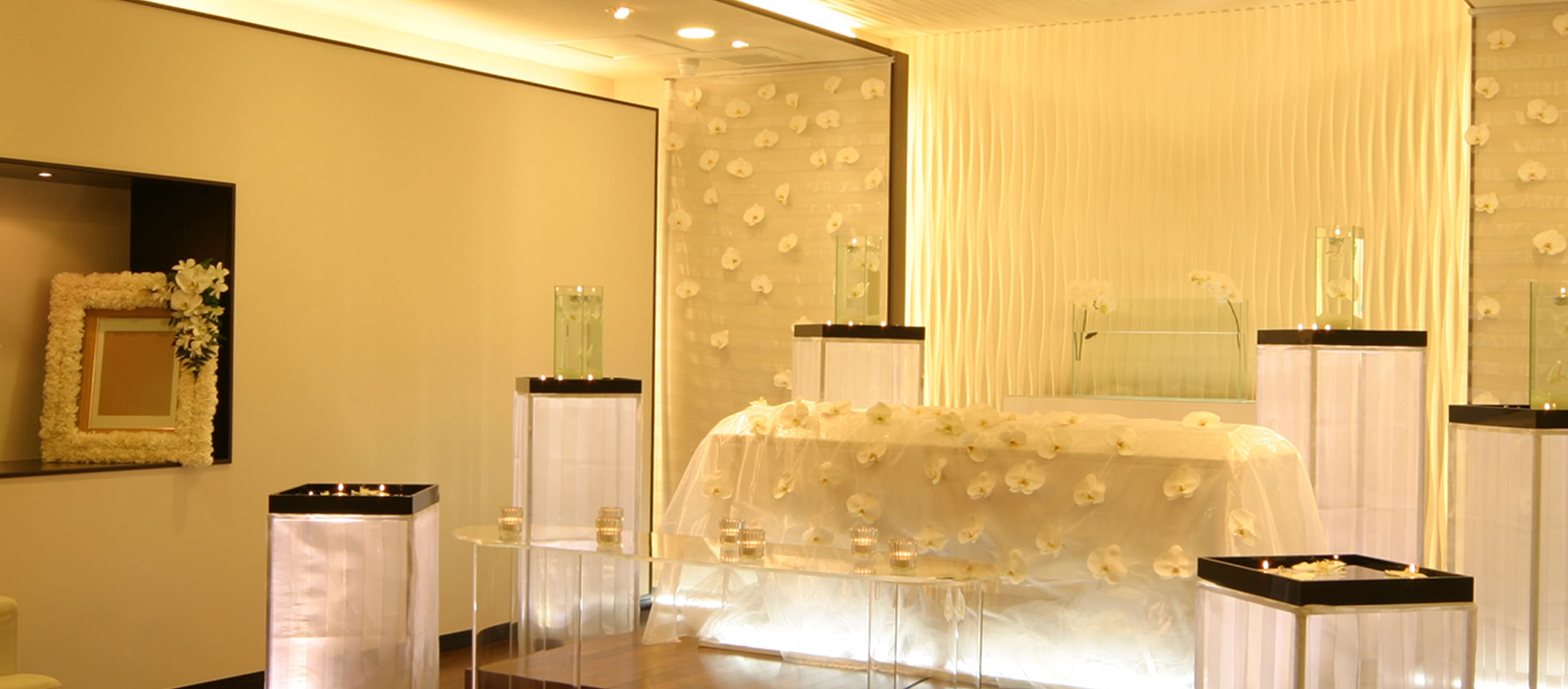 宗教色のないお別れ会、仏式・神式での家族葬など、祭壇だけでなく空間全体を使って様々な演出を行うことができます。